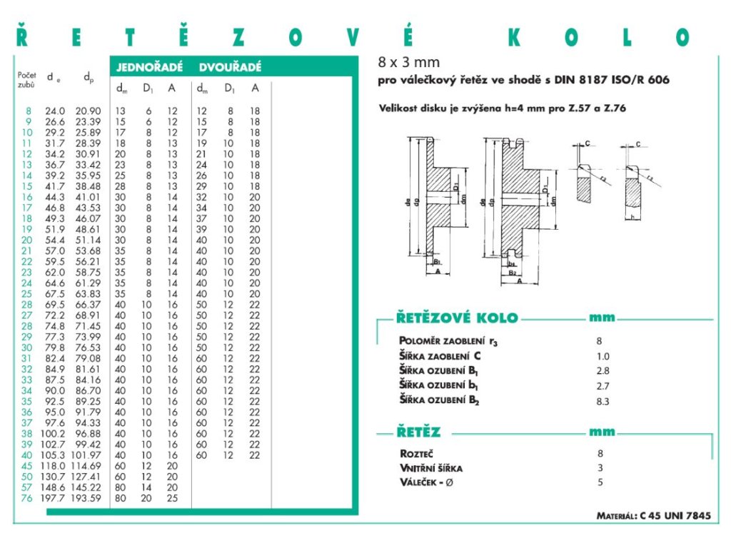 ŘETĚZOVÁ KOLA S NÁBOJEM ŘETĚZOVÉ KOLO JEDNOŘADÉ PRO ŘETĚZ 05B-1 ŘETĚZOVÉ KOLO S NÁBOJEM 8x3 Z32 SIMPLEX