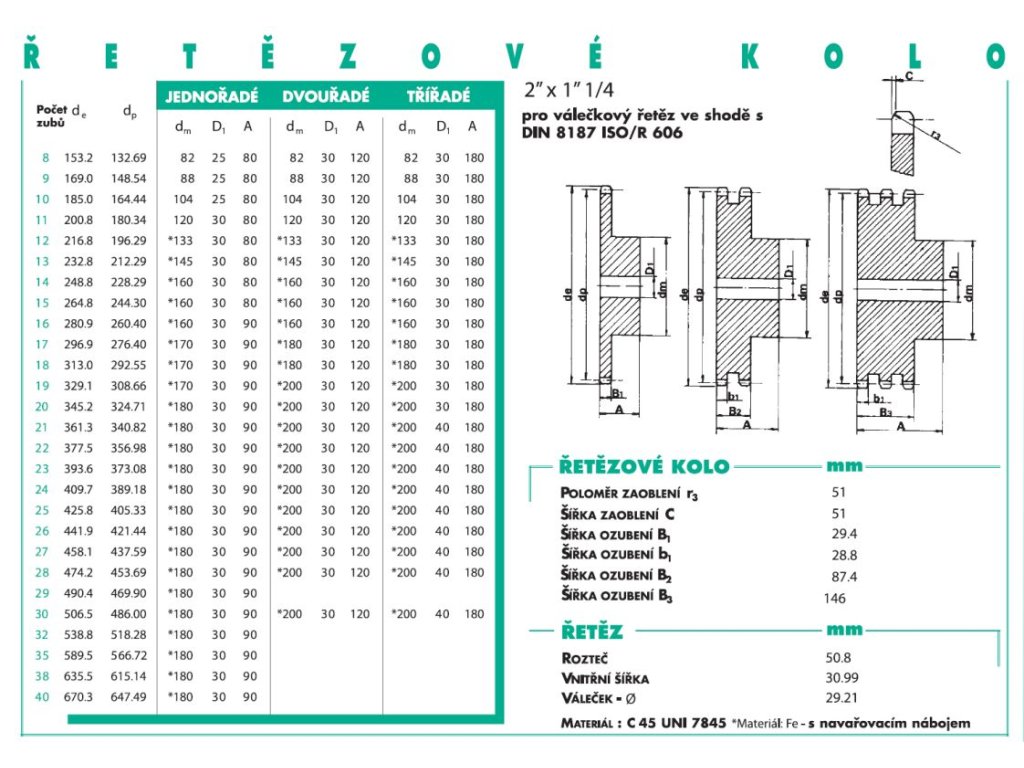 ŘETĚZOVÉ KOLO S NÁBOJEM 2"x1"1/4 Z45 DUPLEX